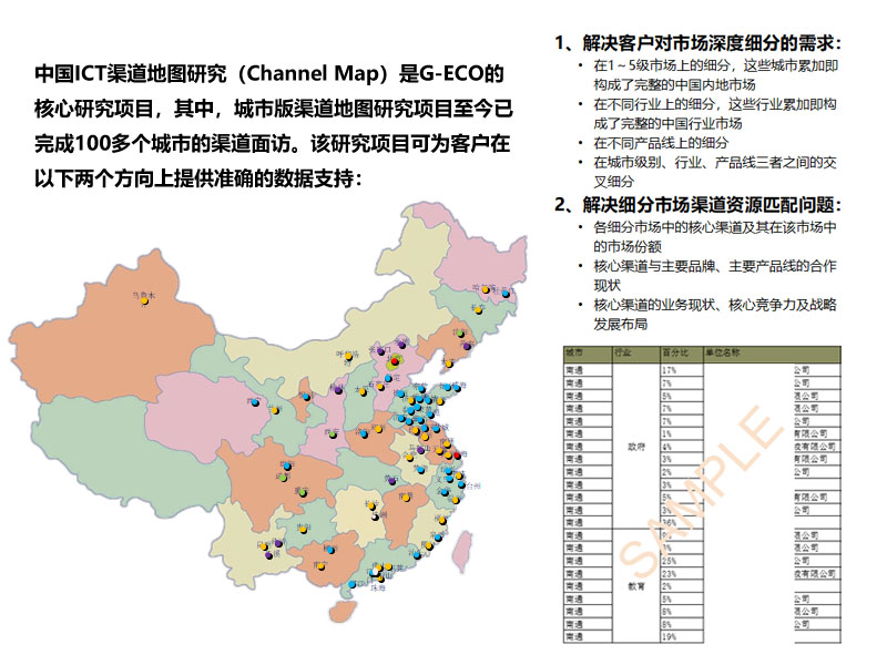 G-ECO自主開展的研究項目,周期性輸出標準研究報告,并可根據客戶需求進行部分定制。常規市場研究項目包含渠道地圖研究、ICT生態系統白皮書系列研究等。